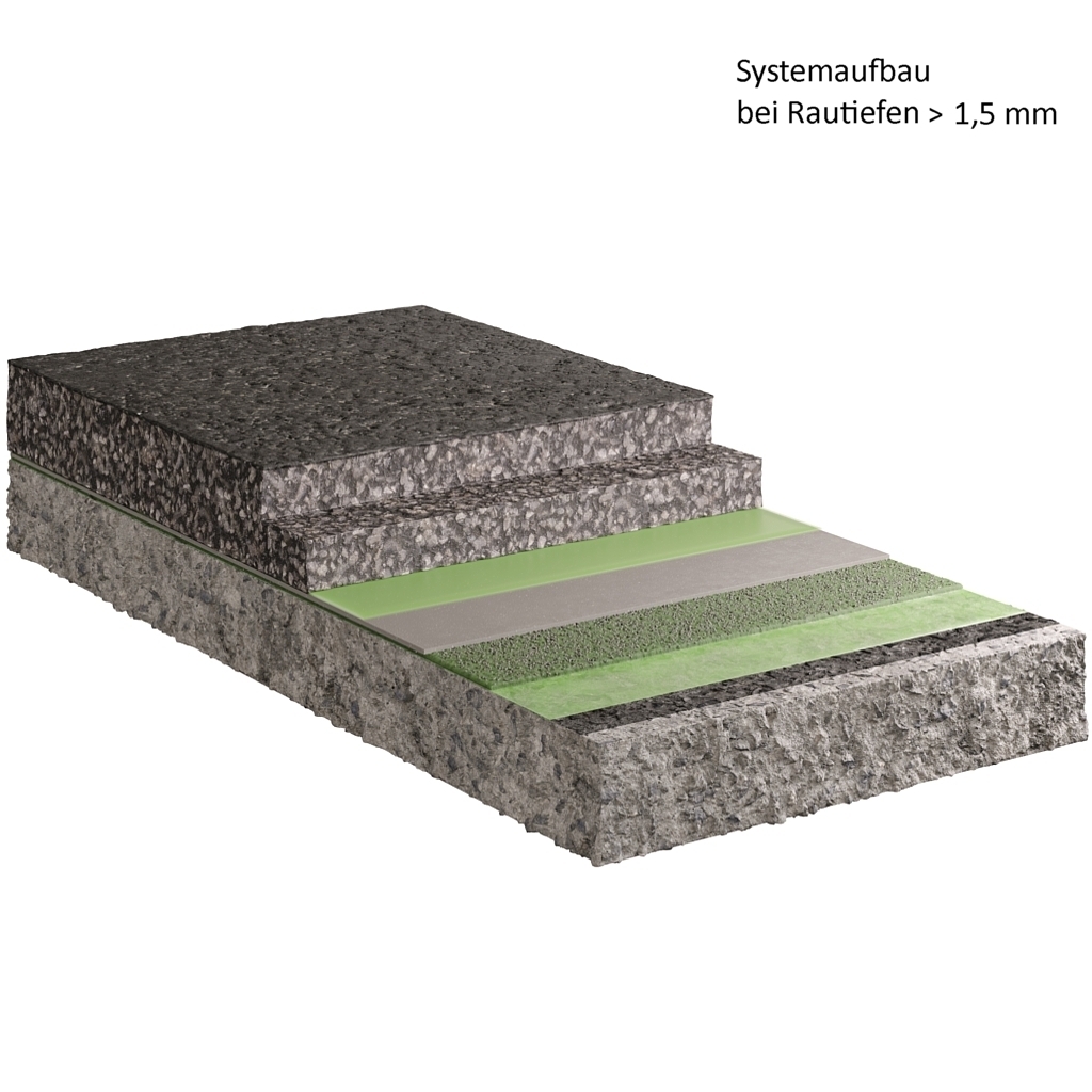 - very good adhesion to mastic asphalt and rolled asphalt, thus good shear strength